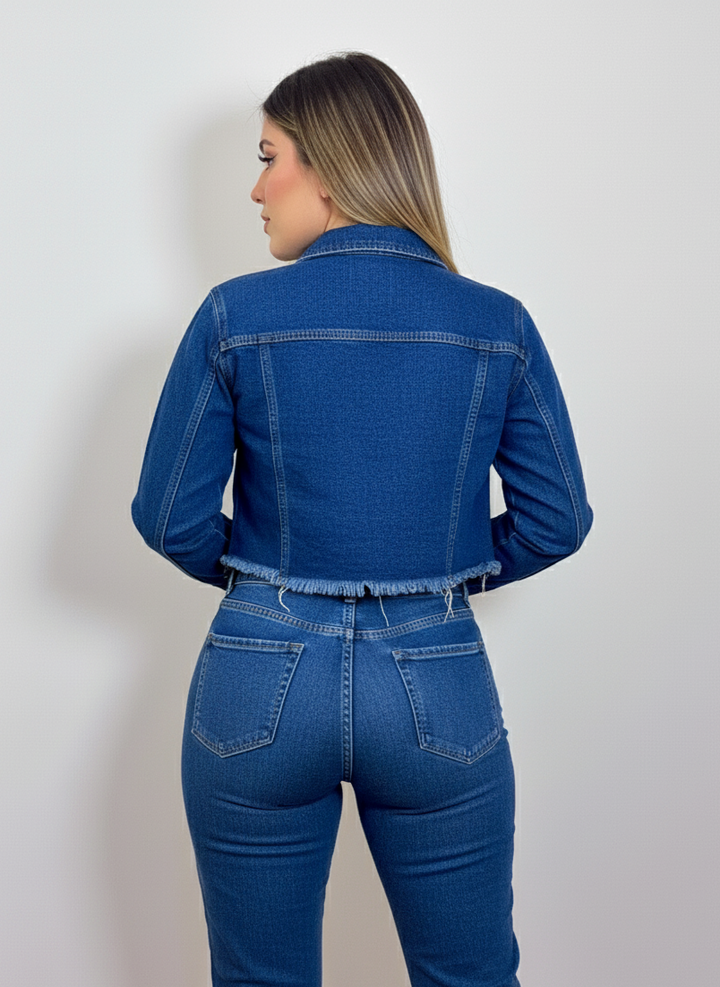 La Chaqueta Torera en Jeans Azul Medio con Pedrería es una prenda que combina el encanto del denim clásico con un toque glamuroso y moderno. Su diseño torera resalta la figura y aporta estructura gracias a su confección en denim rígido, ideal para crear outfits con carácter y estilo.