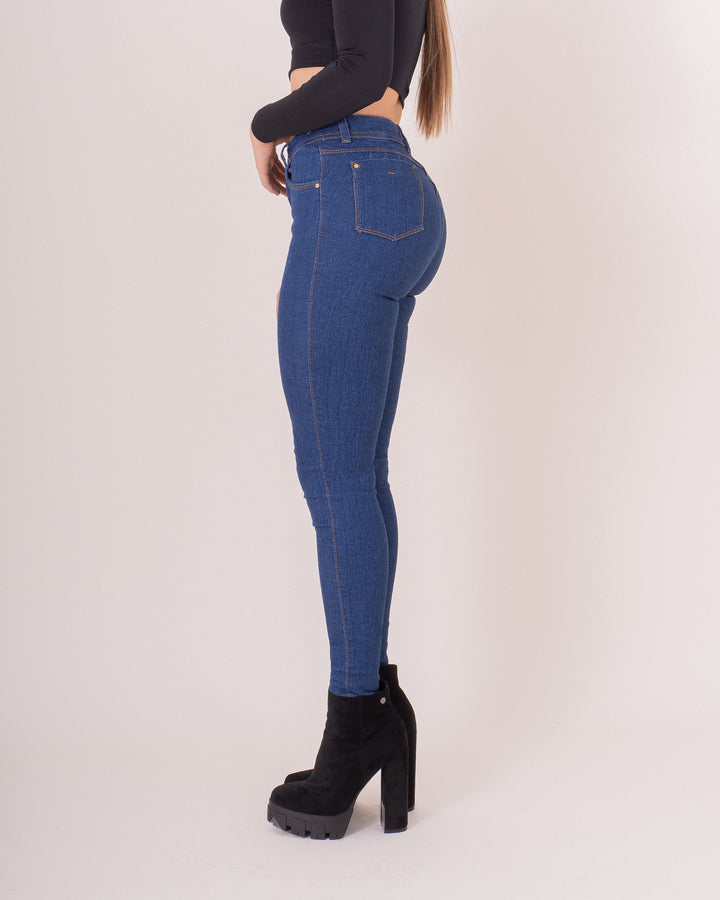 La sensación suave y moldeadora de estos jeans te acompañará todo el día. Distinguiéndose por su versatilidad, son una elección que nunca pasa de moda. El azul medio oscuro favorece múltiples combinaciones y es un tono que resiste efímeros devenires de tendencias.