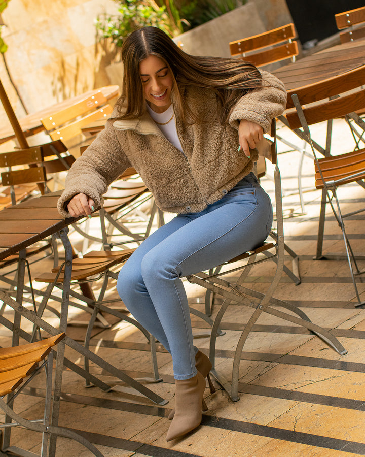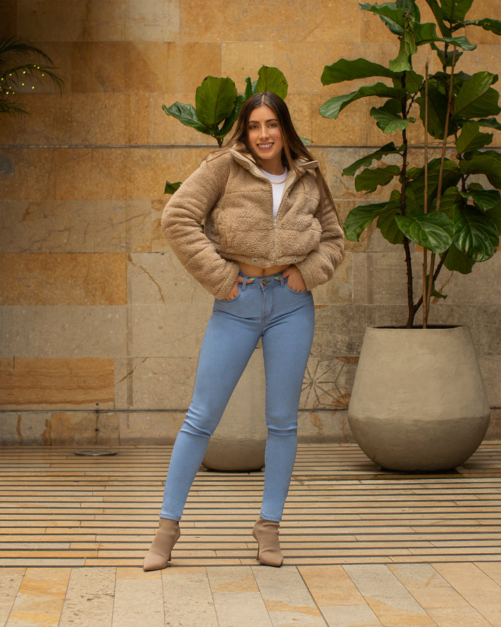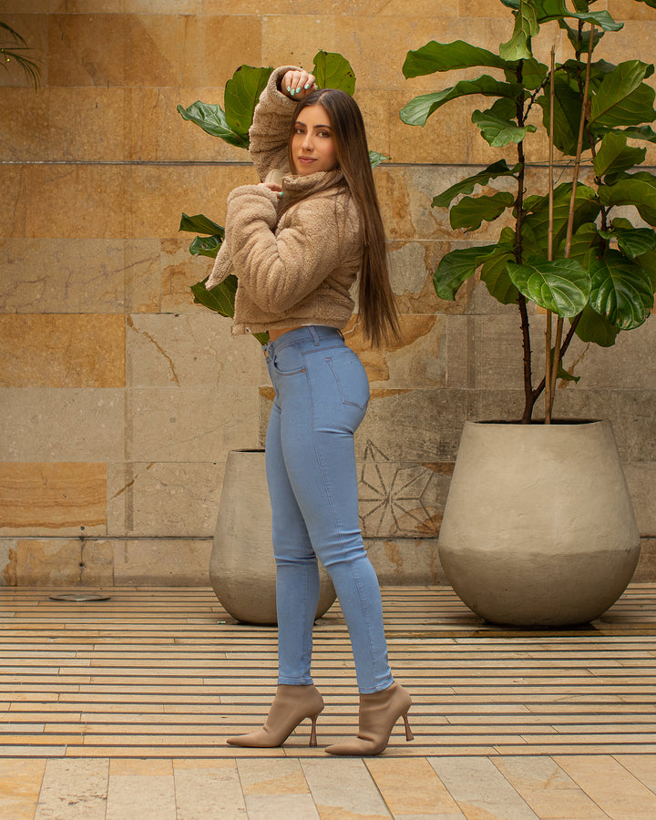 Estilo y ocasión: Los Jeans Skinny Piel Durazno en azul claro son la prenda esencial para quienes buscan añadir un toque casual y moderno a sus pasos diarios. Perfectos tanto para salidas informales como para un día relajado en la oficina.