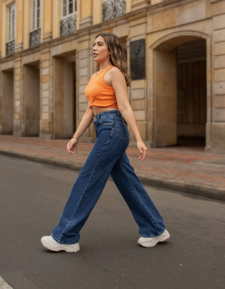 El Jeans Wide Leg Azul Medio Oscuro combina estilo y confort en una prenda versátil que realza cualquier look. Su corte wide leg aporta un aire moderno y relajado, mientras que el tono azul medio oscuro lo convierte en un básico elegante y fácil de combinar.