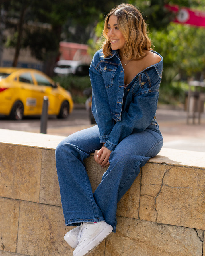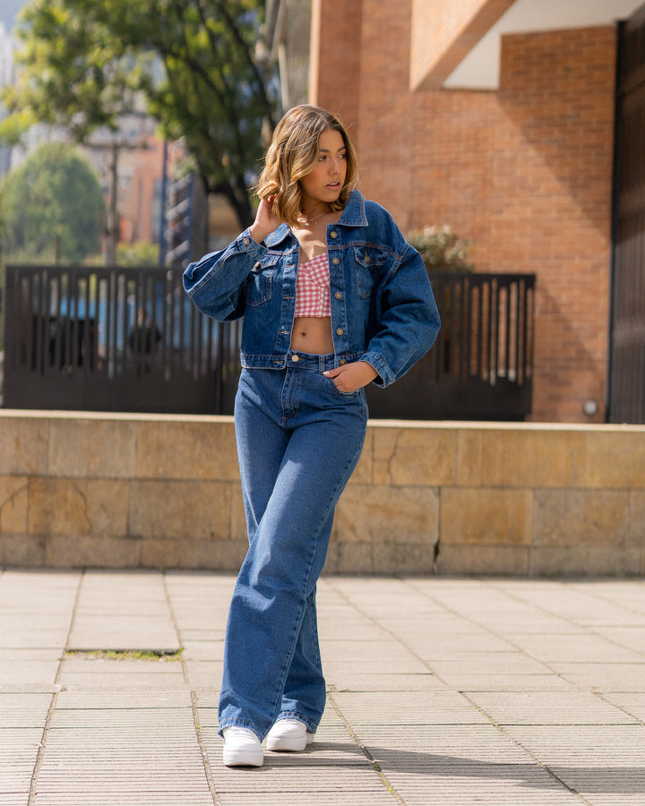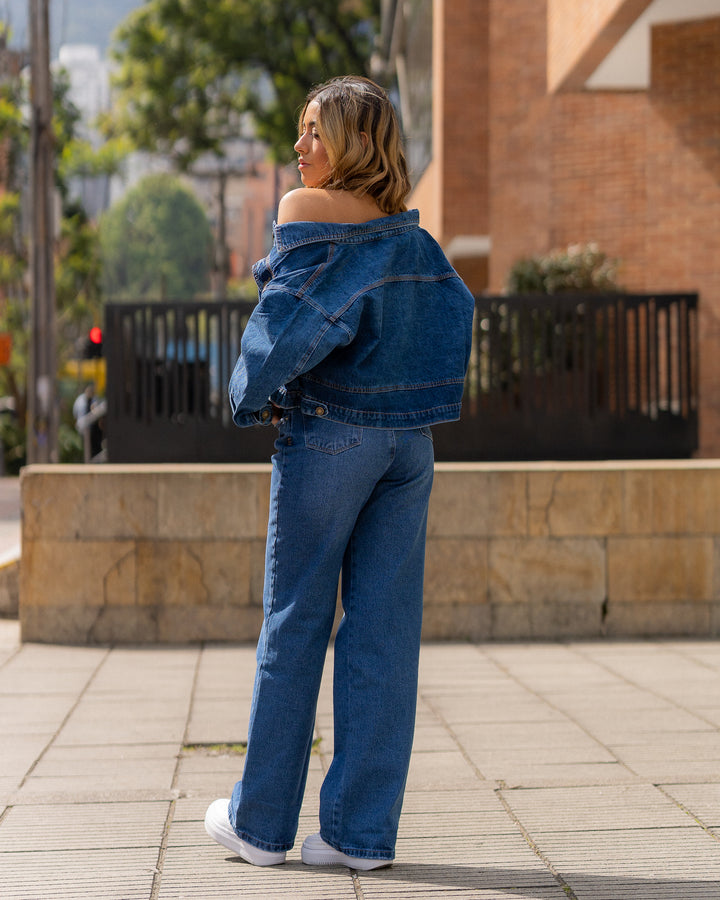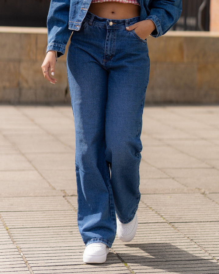 El Jeans Wide Leg Azul Medio es la prenda perfecta para quienes buscan un estilo moderno sin sacrificar comodidad. Su diseño de pierna ancha y caída recta crea un efecto visual que estiliza, mientras que su color azul medio lo convierte en un básico fácil de combinar.